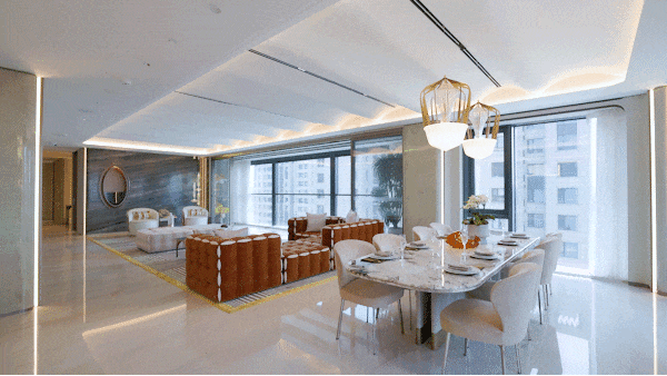 对于那些正在楼市中寻觅抱负资产的层峰人士来说,这种长进深且朴直的厅堂也很是敌对,无论是办公区、影音室、书房等区域。