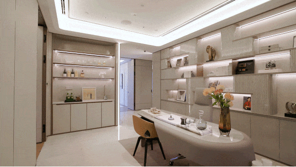 沿墙壁能够摆下多个收纳柜、粉饰柜等等,深切领会古北地方公园·壹号第宅,